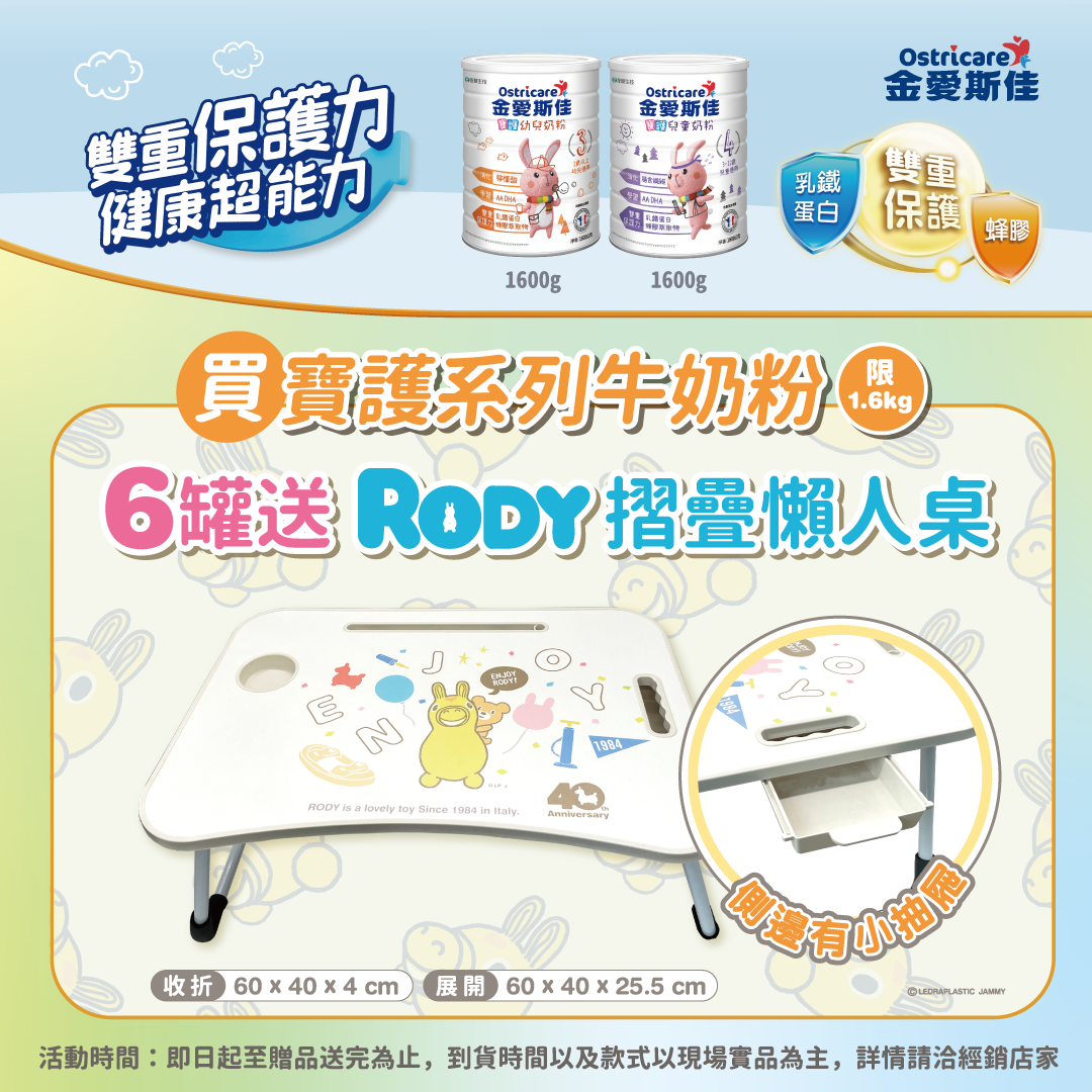 即日起至7/31於全台門市通路,購買6罐金愛斯佳寶護牛奶粉(1.6kg),即可獲得精美好禮